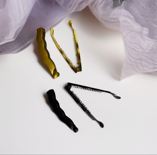 FlexiClip – Sleek Hold, Everyday EaseSet of 2 minimal banana clips in black and gold....