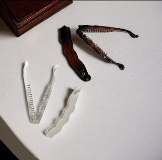 FlexiClip – Sleek Hold, Everyday EaseSet of 2 minimal banana clips in white and beige....