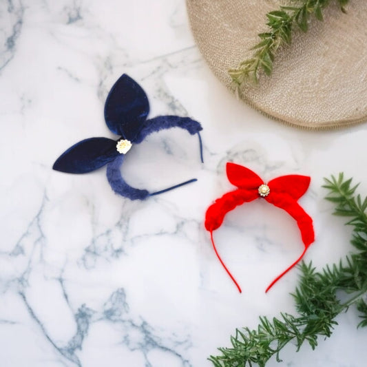 VelvetBands is a set of 2 plush hairbands in rich red and navy—soft, elegant, and...