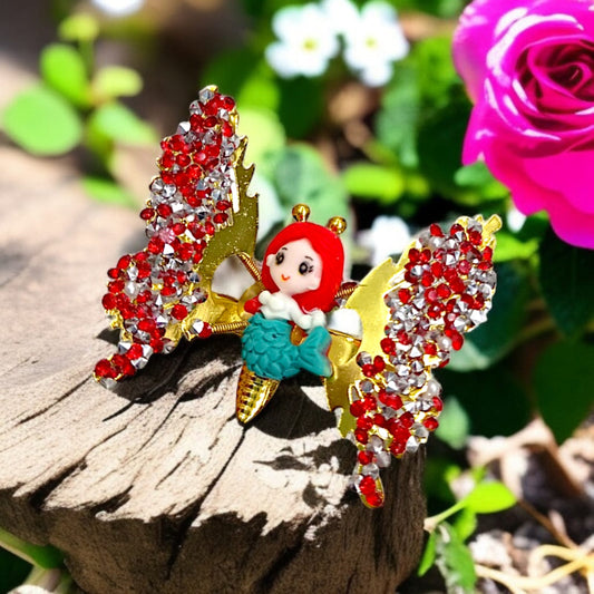 The wings are gold-colored and adorned with red and clear rhinestones or crystals. Pack of...
