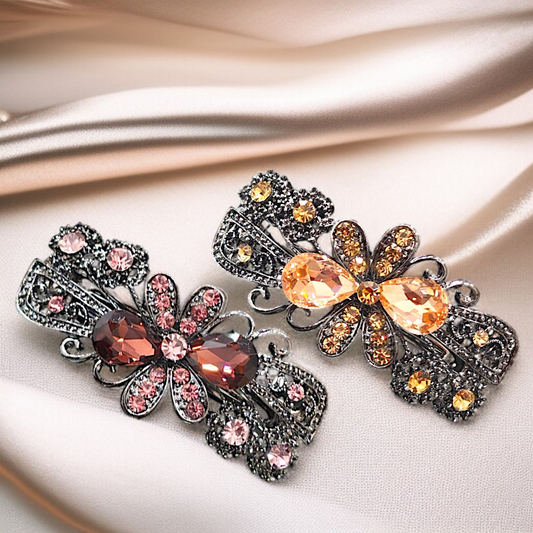 Vintage Glamour Rhinestone Hair Clips Ornate Floral Crystal Hair Barrettes