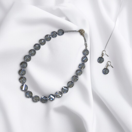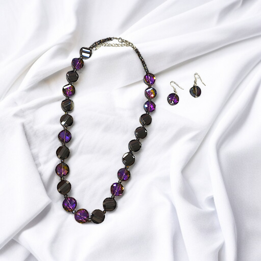 BeatsBelle Set – Smoke & Amethyst EleganceA crystal necklace and earring duo in smoky gray...