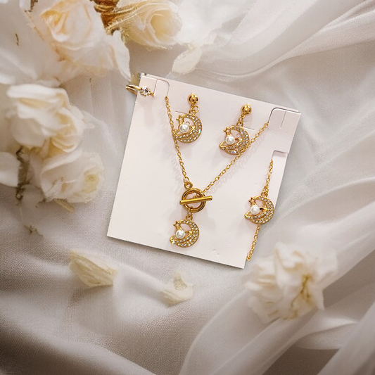 Pearlune is a graceful moon-and-pearl jewelry set with a soft golden finish—lightweight, elegant, and perfect...