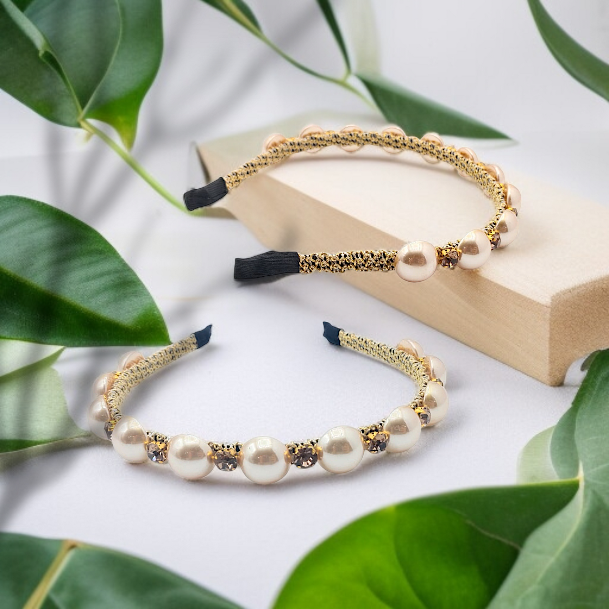 Adorned with radiant soft golden color stones, the DazzleStone Band adds a touch of sparkle and elegance to any hairstyle .