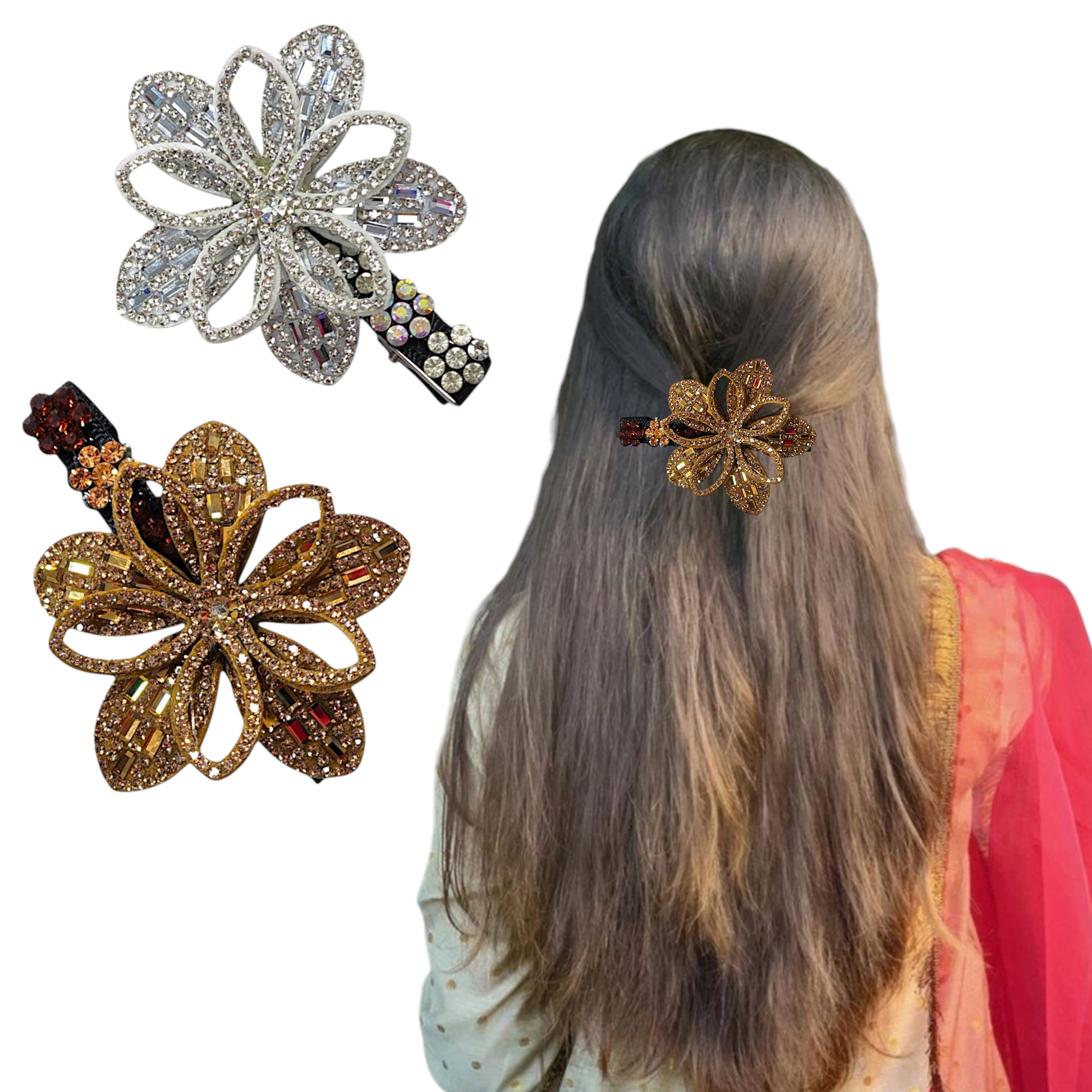 Floralure is a set of 2 dazzling flower-shaped clips with intricate design—lightweight, stylish, and perfect for any occasion