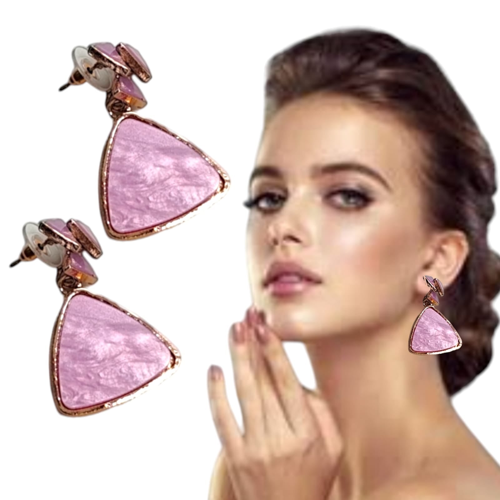 Elegant Pink Triangle Stone Drop Earrings