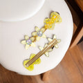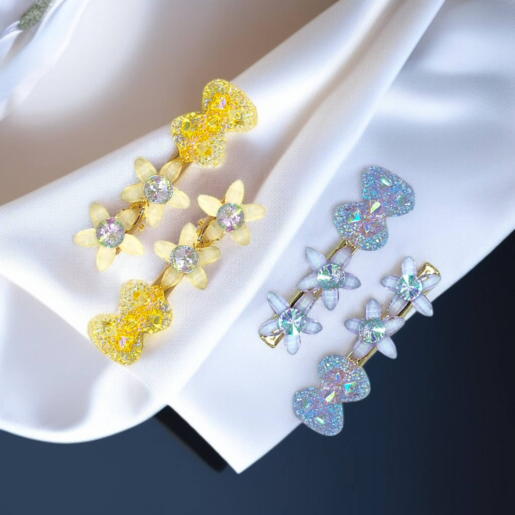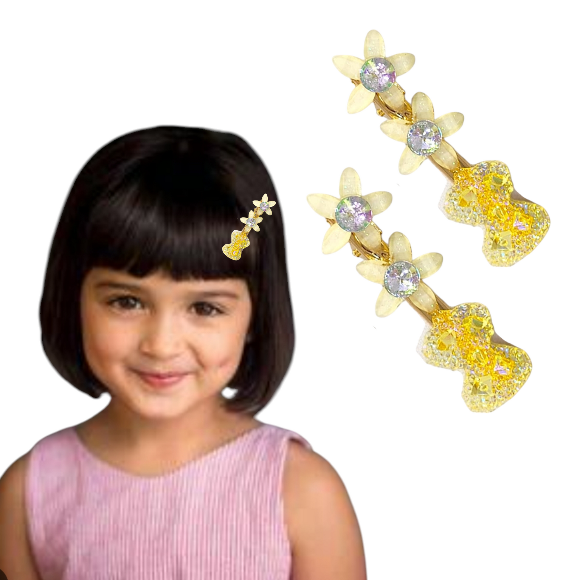 A set of 2 floral-inspired clips in cheerful yellow and soft ice blue. Lightweight, secure, and perfect for adding a playful pop to any hairstyle.