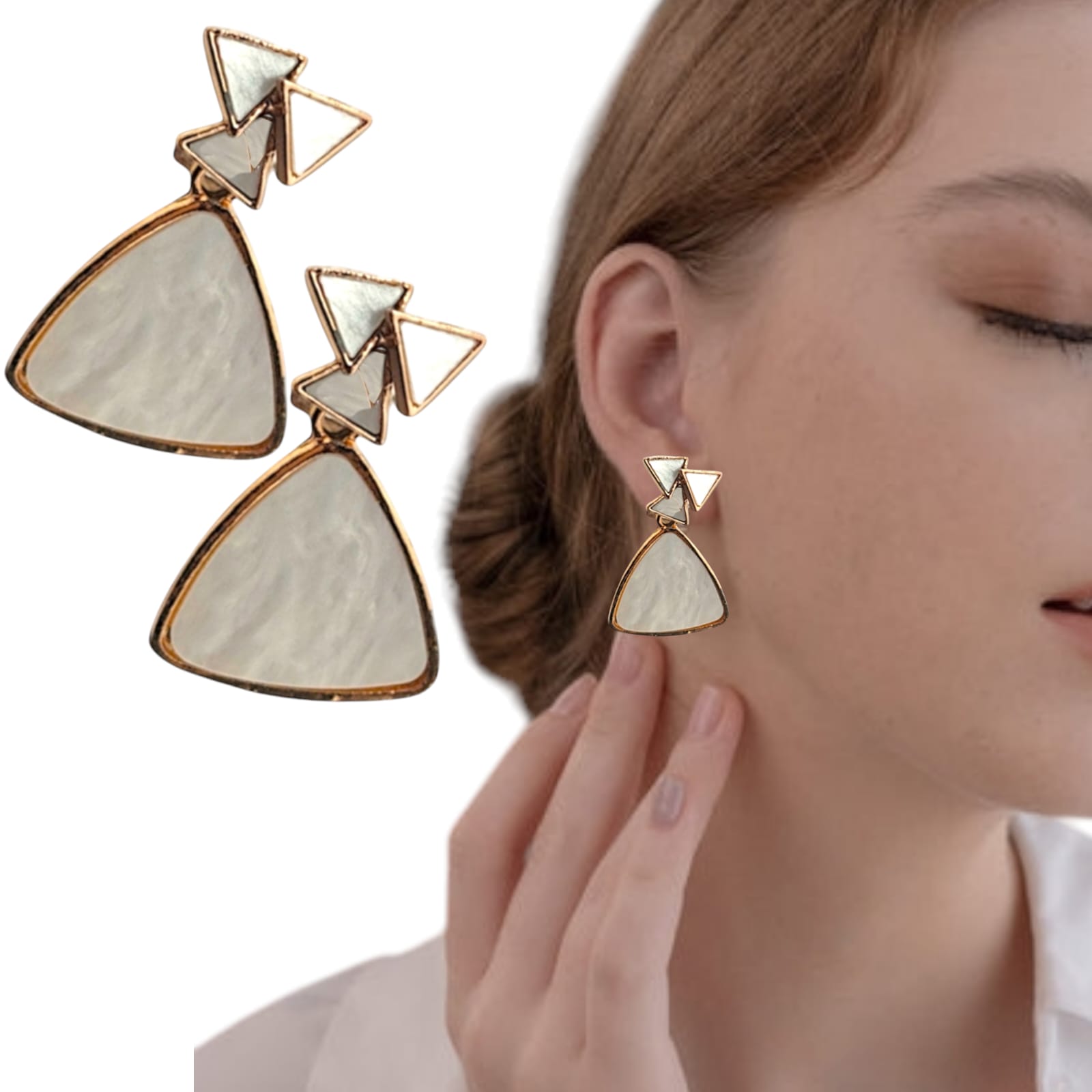 Geometric Drop Earrings ā Triangular Design with Gold Edging