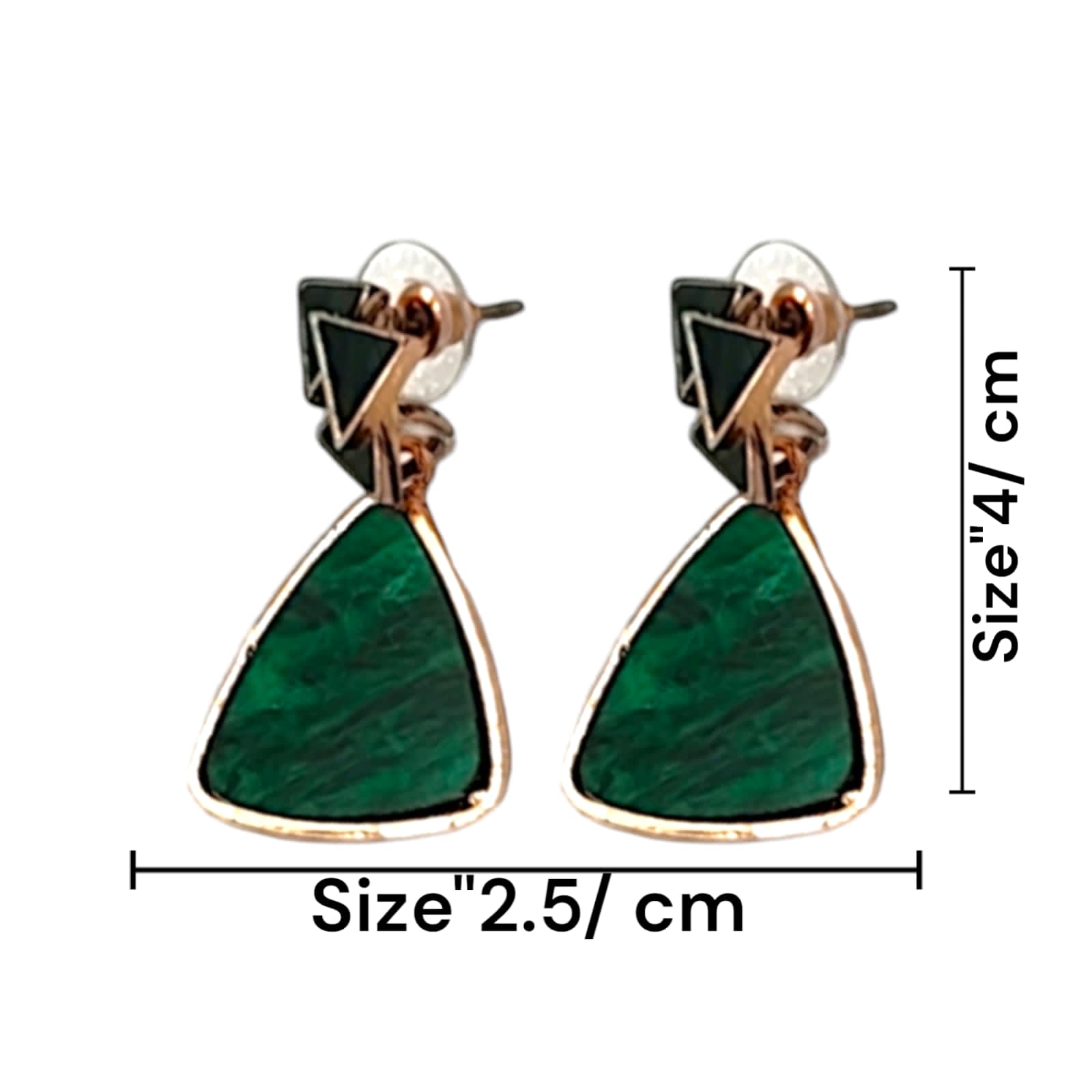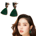 Geometric Green Stone Drop Earrings