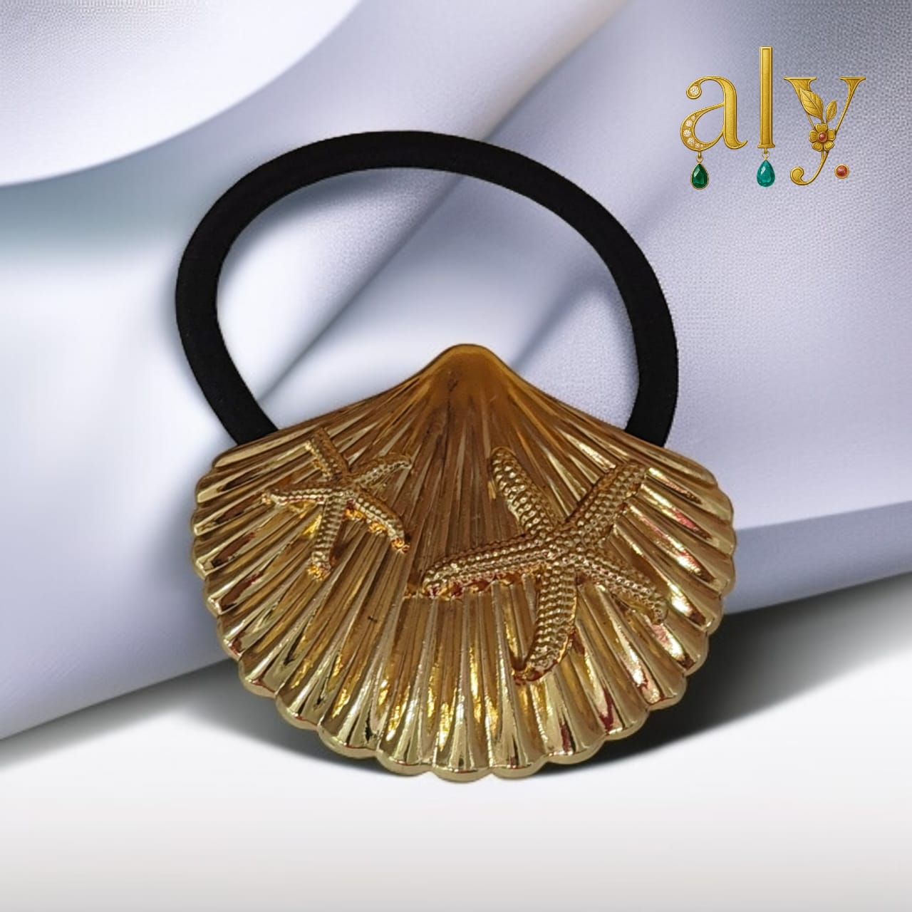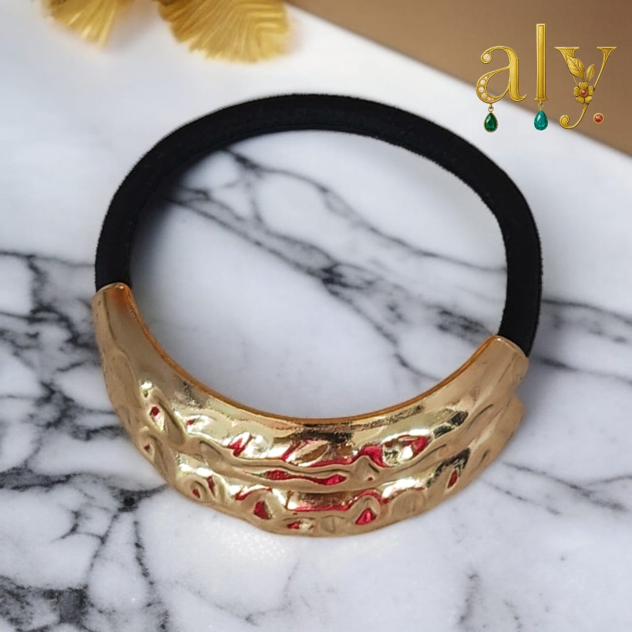 Gold-toned crescent accent.