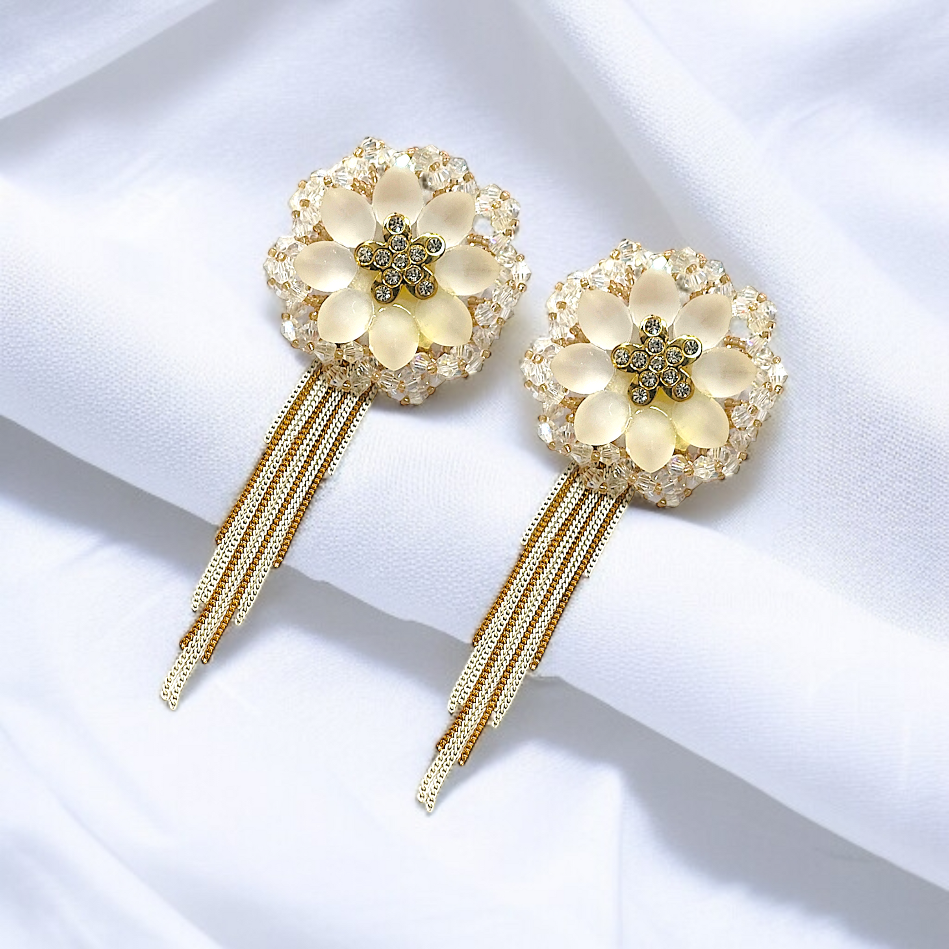Delicate off-white tassel earrings inspired by blooming florals. Lightweight and graceful, FloraTassels add a touch of effortless elegance to any outfit.