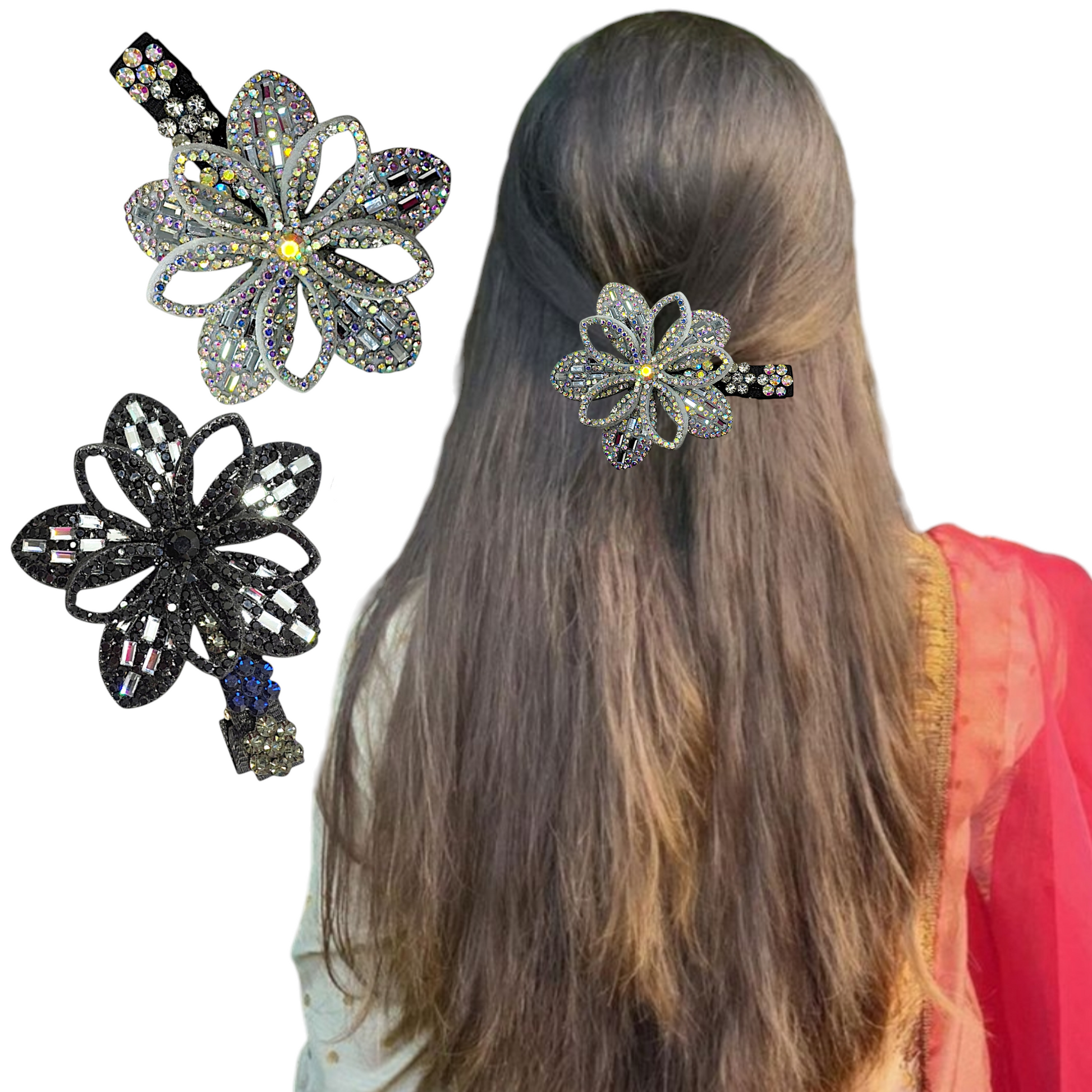 Floralure is a set of 2 dazzling flower-shaped clips with intricate design—lightweight, stylish, and perfect for any occasion .