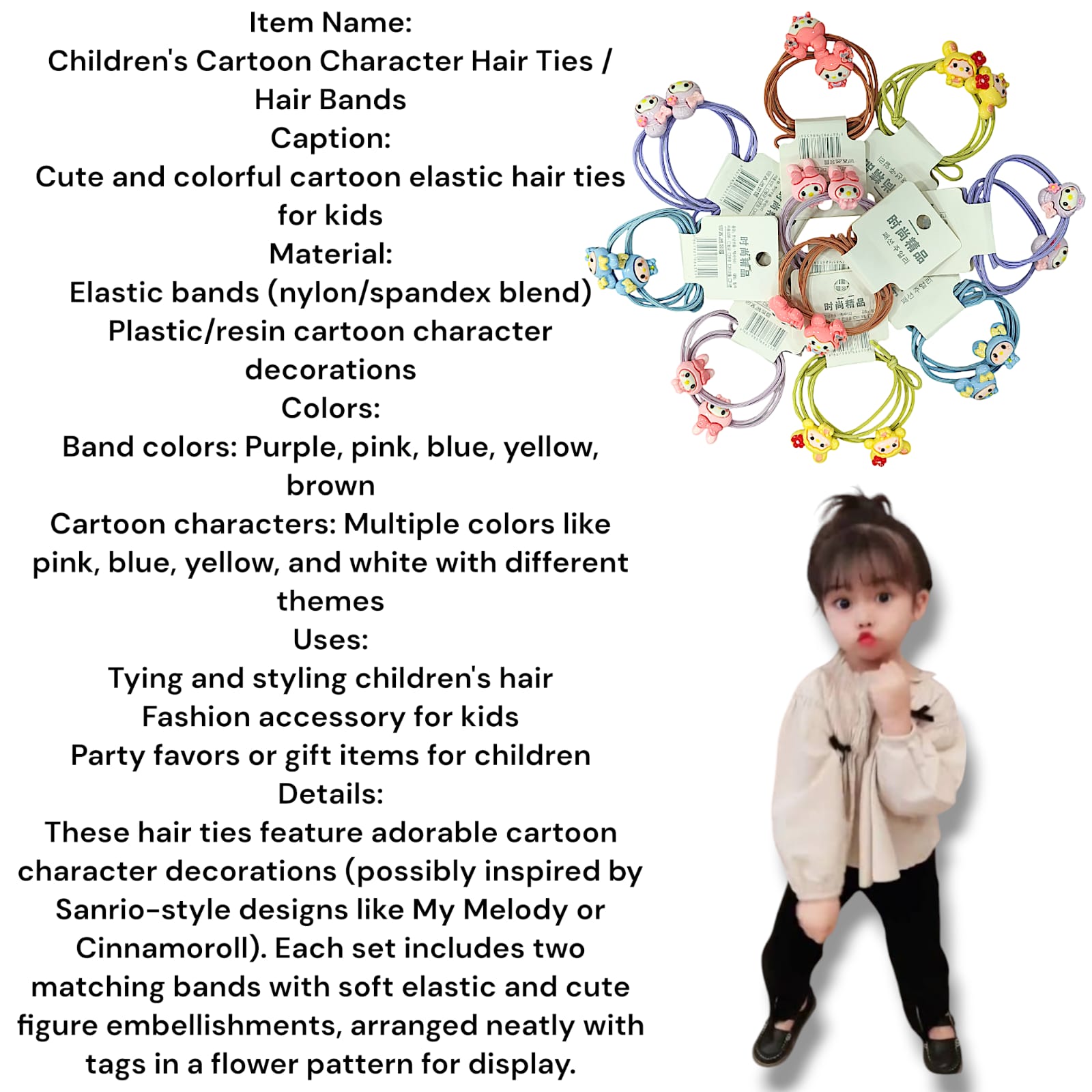 Sanrio Hair ties featuring cartoon character charms Pack of 5 pairs