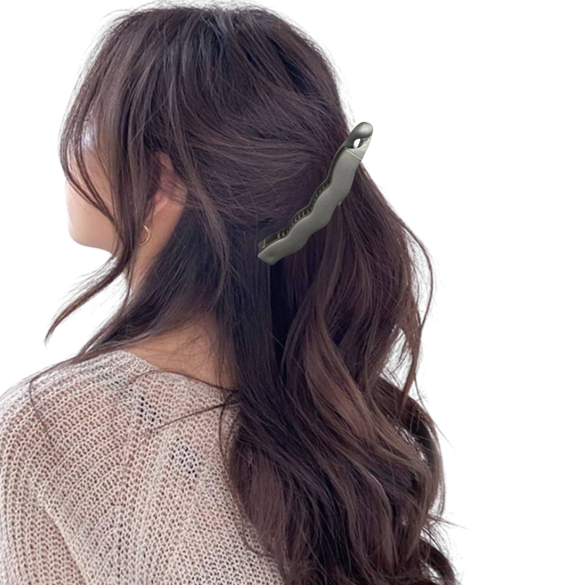 Set of 2 minimal banana clips in silver and grey. Strong grip, lightweight feel—perfect for daily, fuss-free styling.