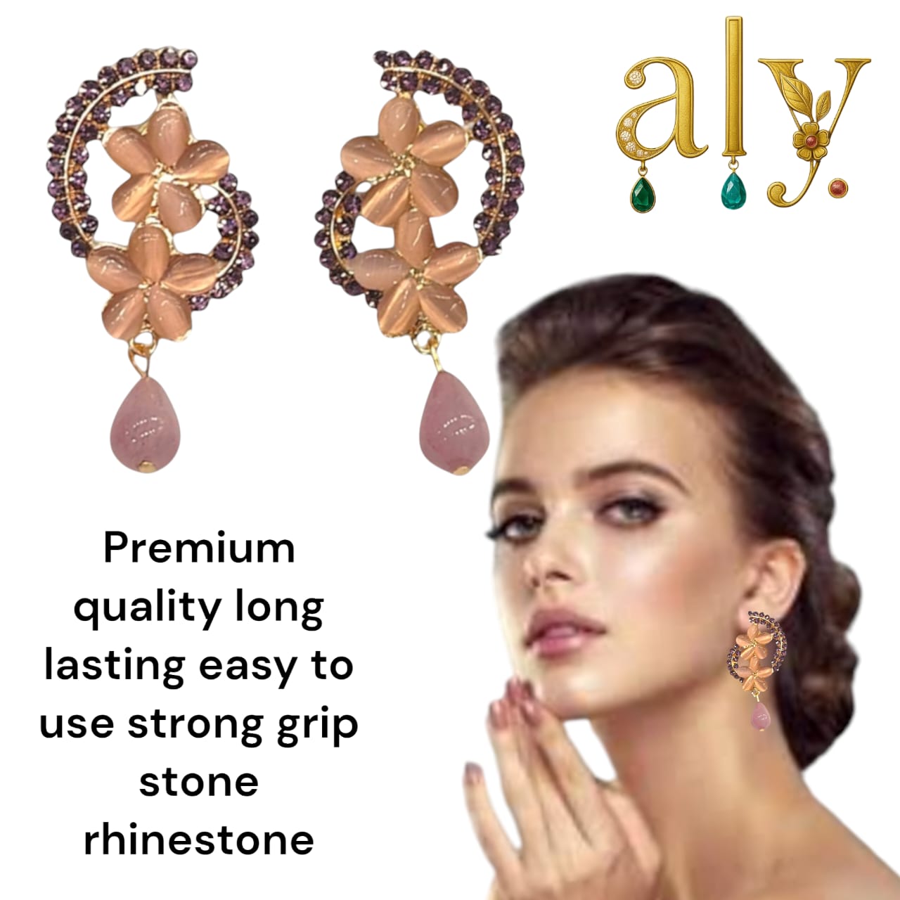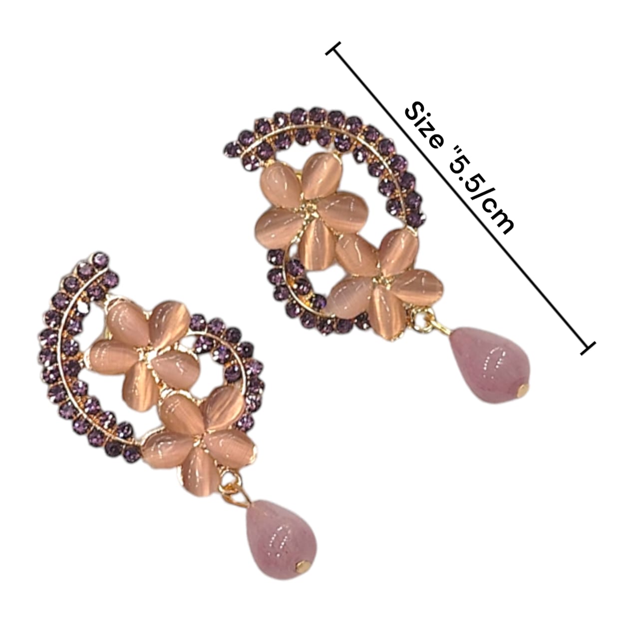 "Gracefully crafted, the Noir Bloom Drops feature delicate floral motifs adorned with dark glossy stones and a teardrop accent, perfect for adding a touch of sophistication to any ensemble."