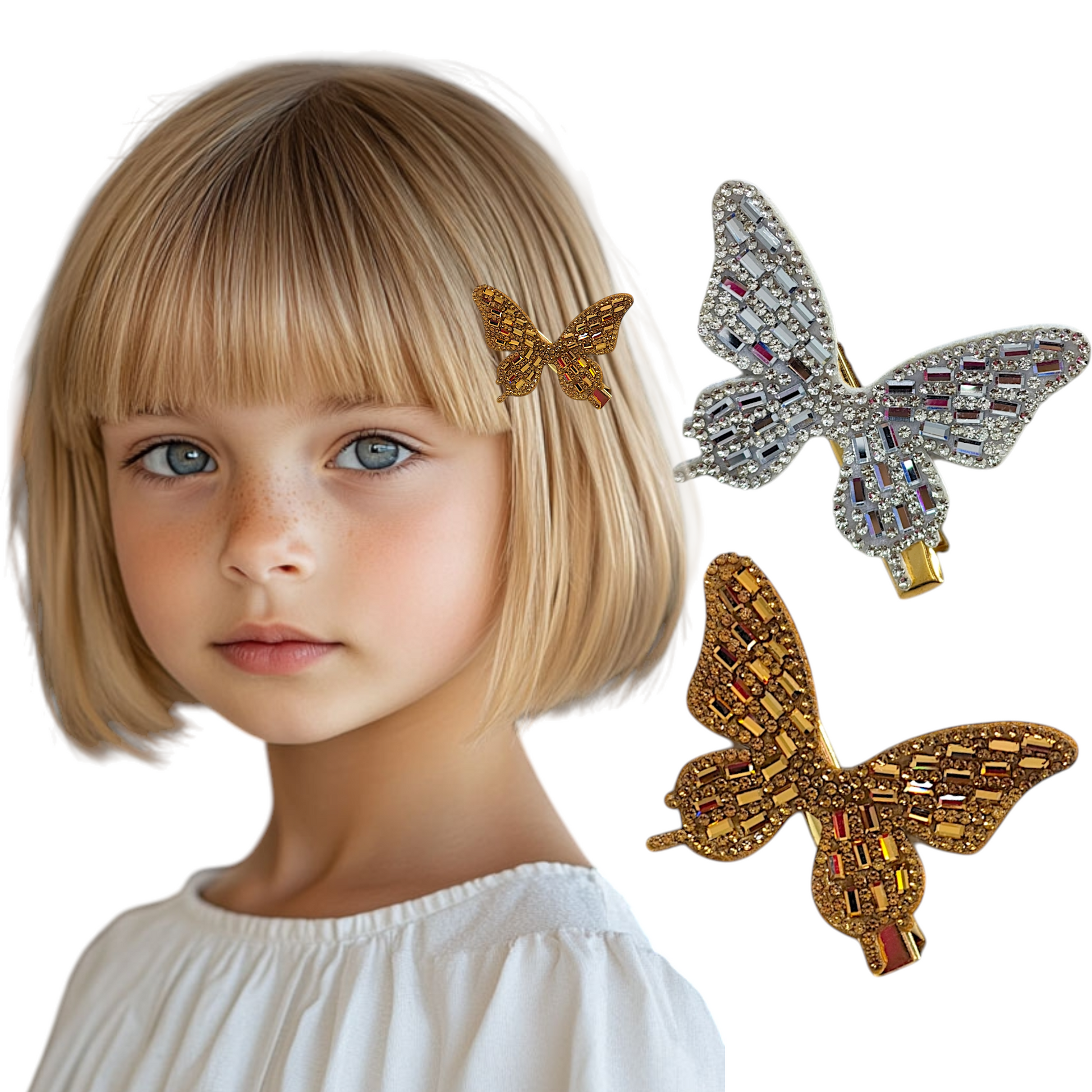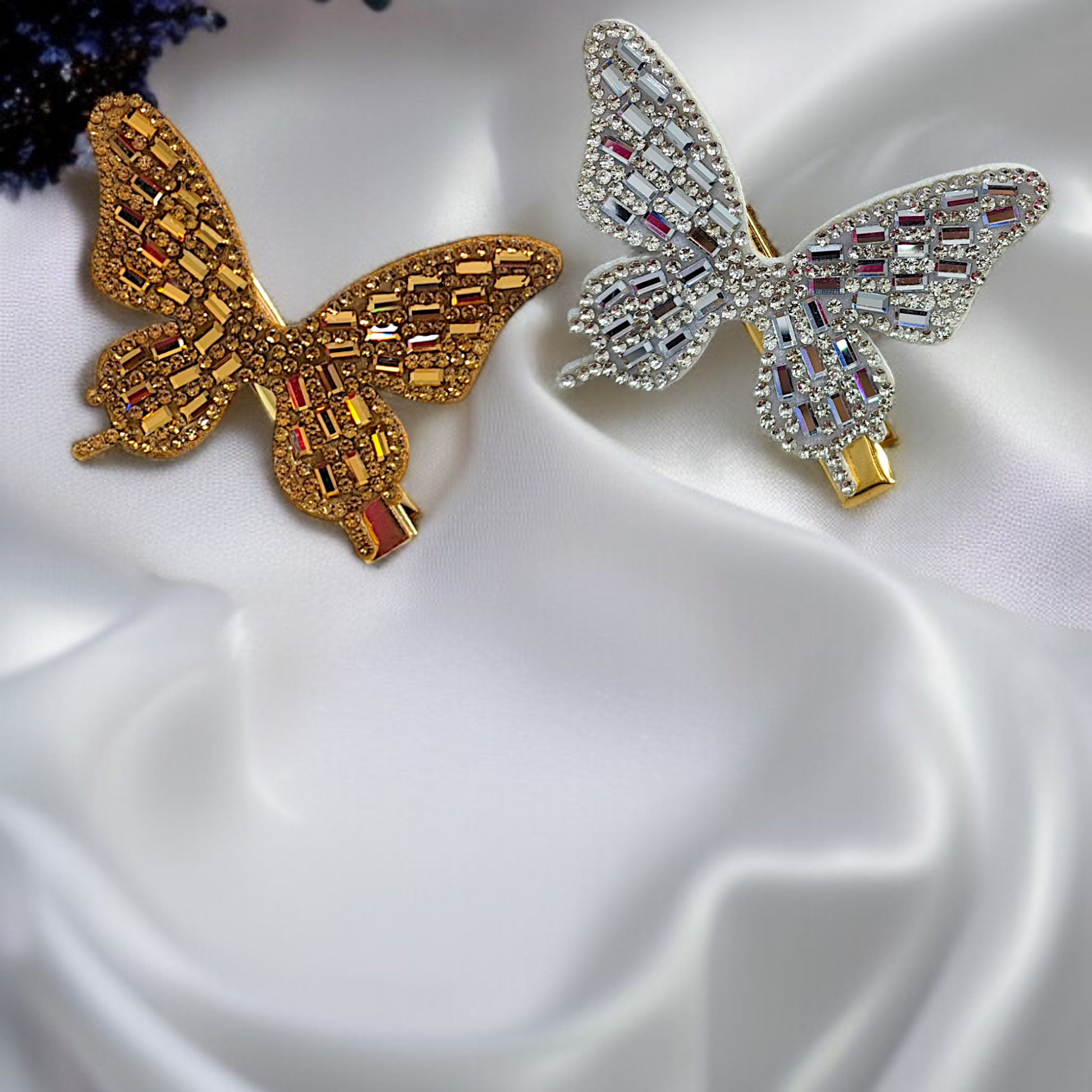 Crystafly is a set of 2 stunning butterfly clips with crystal accents—elegant, lightweight, and perfect for adding sparkle to any look .
