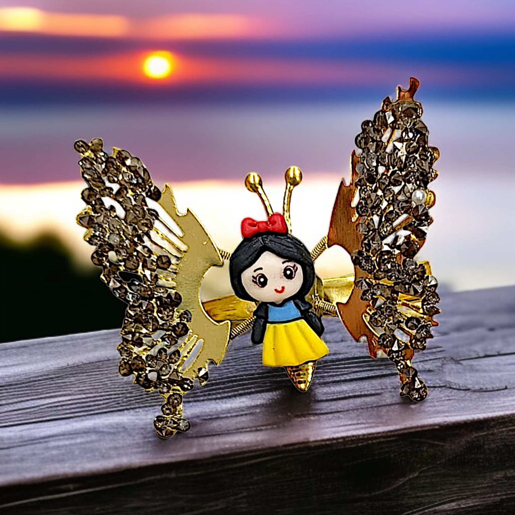 Snow White figurine with butterfly wings, the wings are made of gold and adorned with small, sparkling stones. Pack of 2 Pairs.