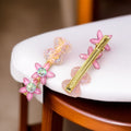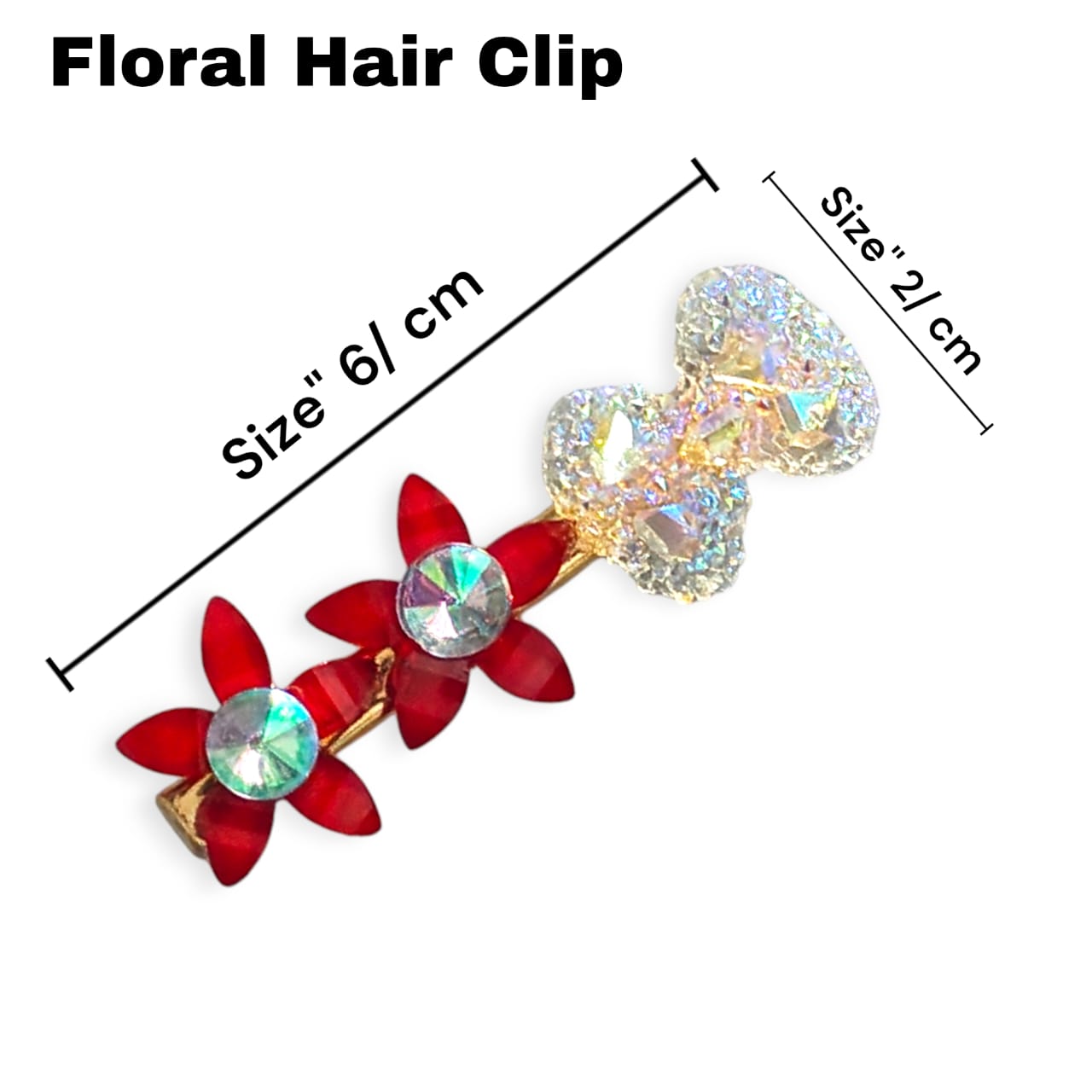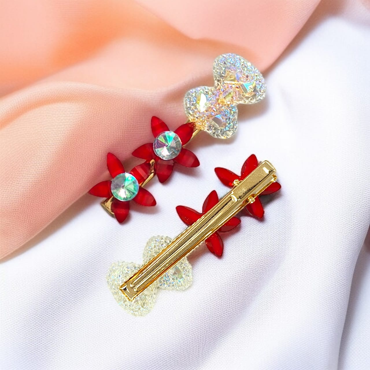 A set of 2 floral-inspired clips in red and soft pink . Lightweight, secure, and perfect for adding a playful pop to any hairstyle .