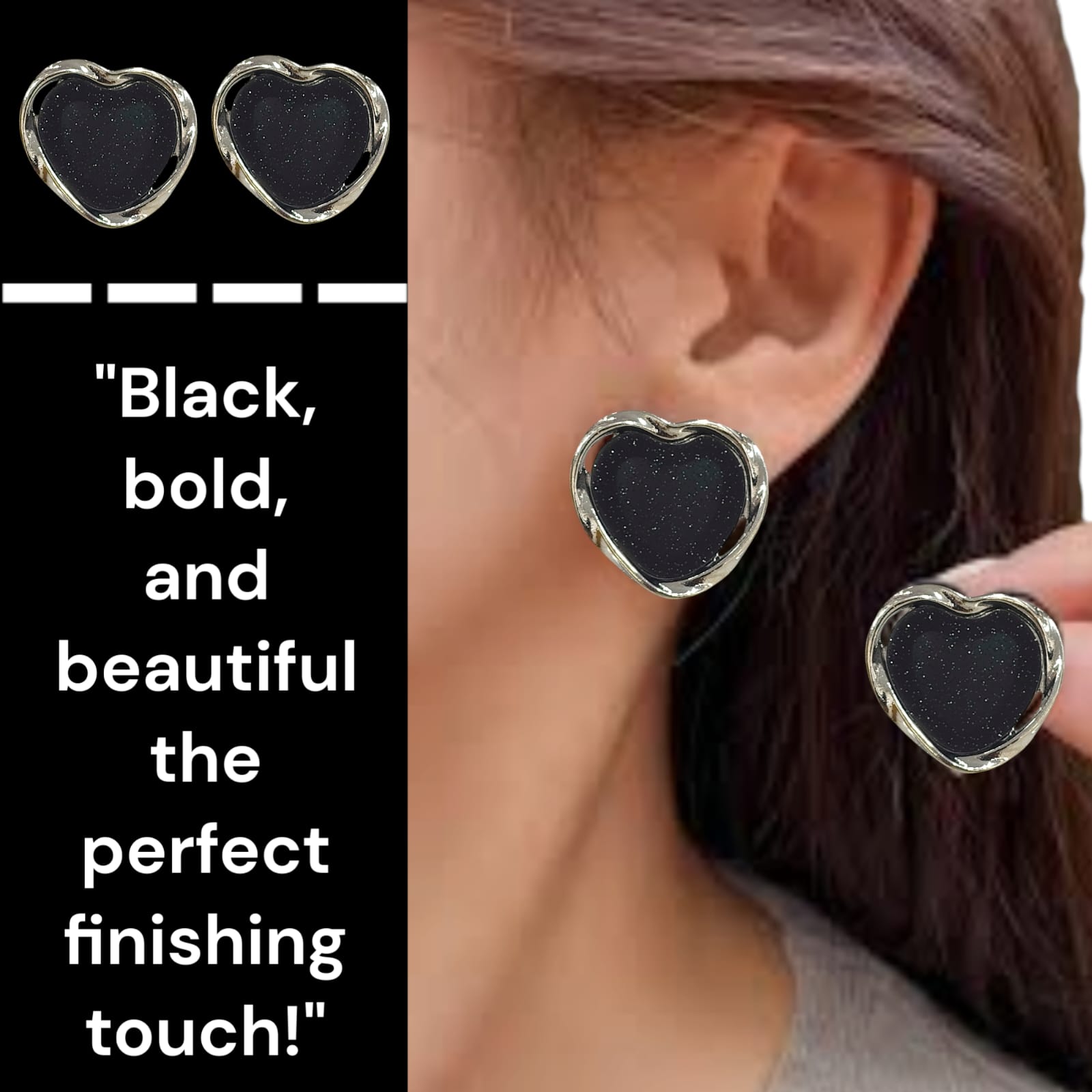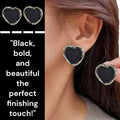 Sleek black heart-shaped earrings that add a bold, romantic touch to any look—perfect for everyday or evening wear.