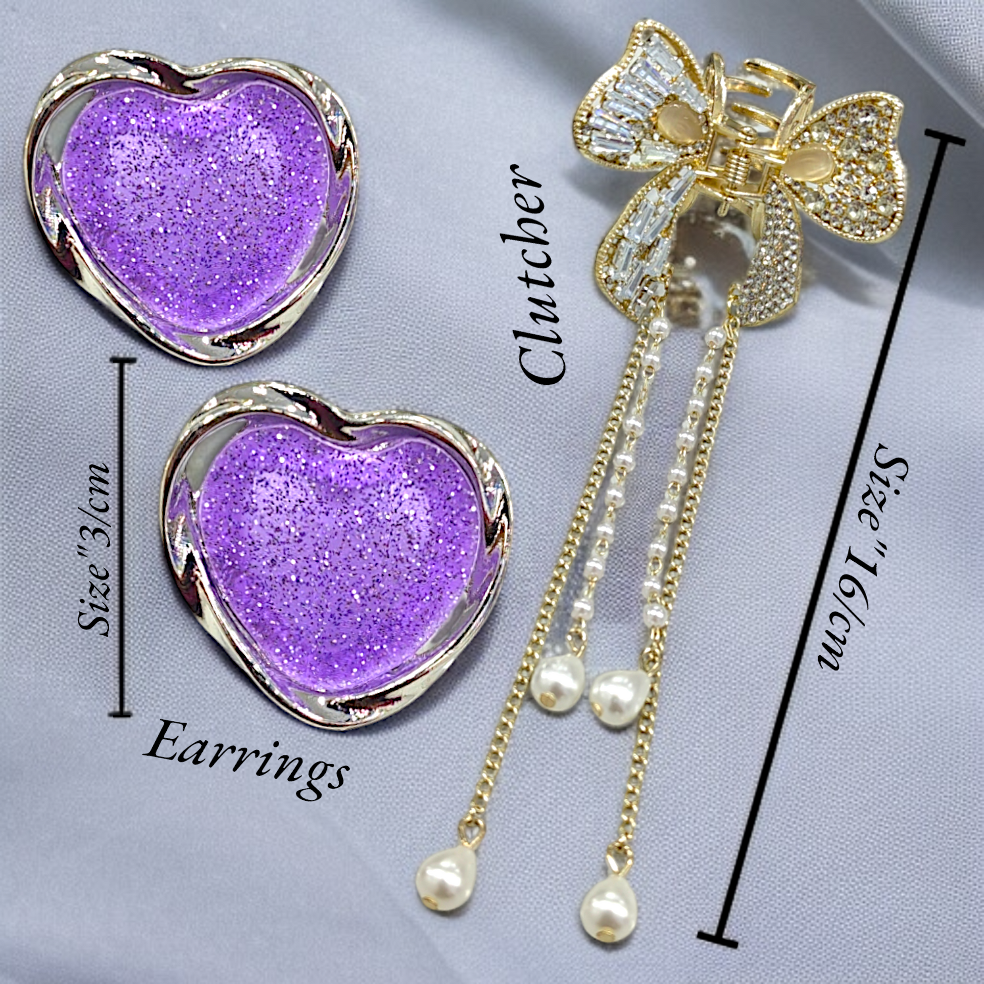 Elevate your look with this versatile and thoughtfully curated combo, featuring a chic hair accessory paired with sophisticated earrings. Designed to bring together floral charm and a hint of sparkle, this set adds the perfect finishing touch to both casual and formal outfits.