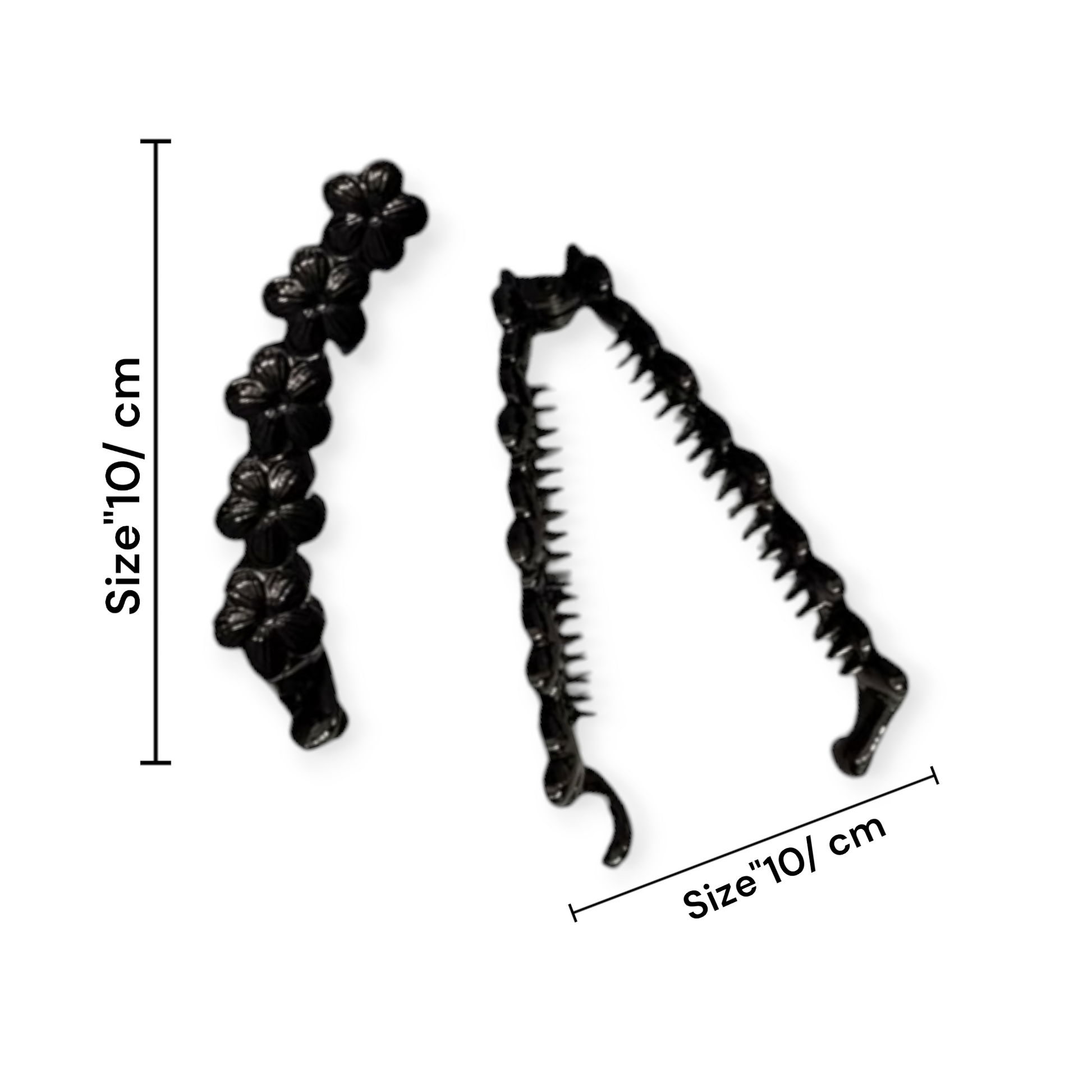 A set of 2 floral-inspired banana clips in Black & Grey—elegant, secure, and perfect for effortless everyday styling.