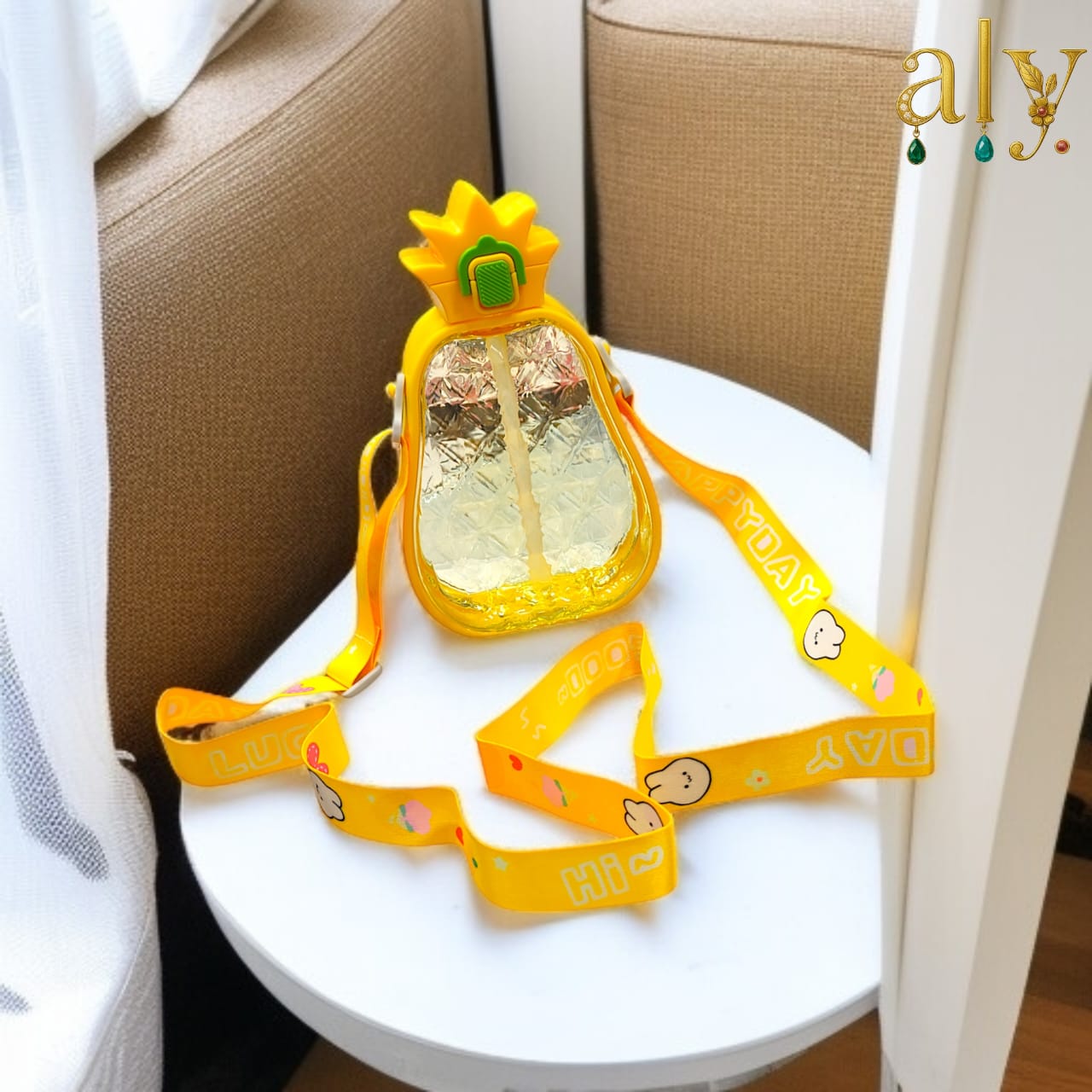 Featuring a unique pineapple design, this vibrant yellow bottle stands out with its textured detailing that mimics the natural charm of a real pineapple. Fun, fresh, and functional—hydration just got a tropical upgrade!