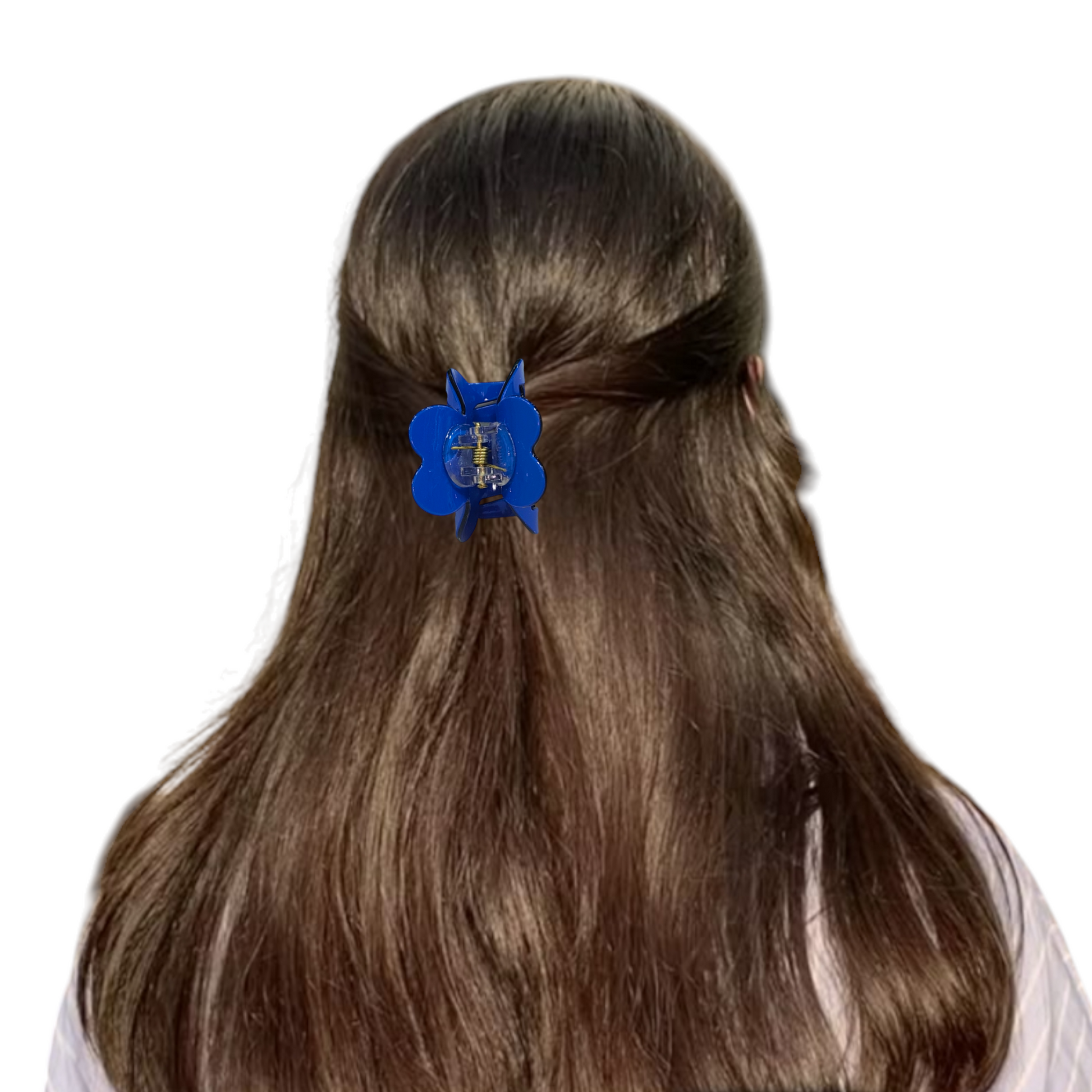 Duo of Style is a set of 2 hair claws—one bold solid blue and one with a fun clock-and-flower print. Stylish, lightweight, and perfect for everyday looks