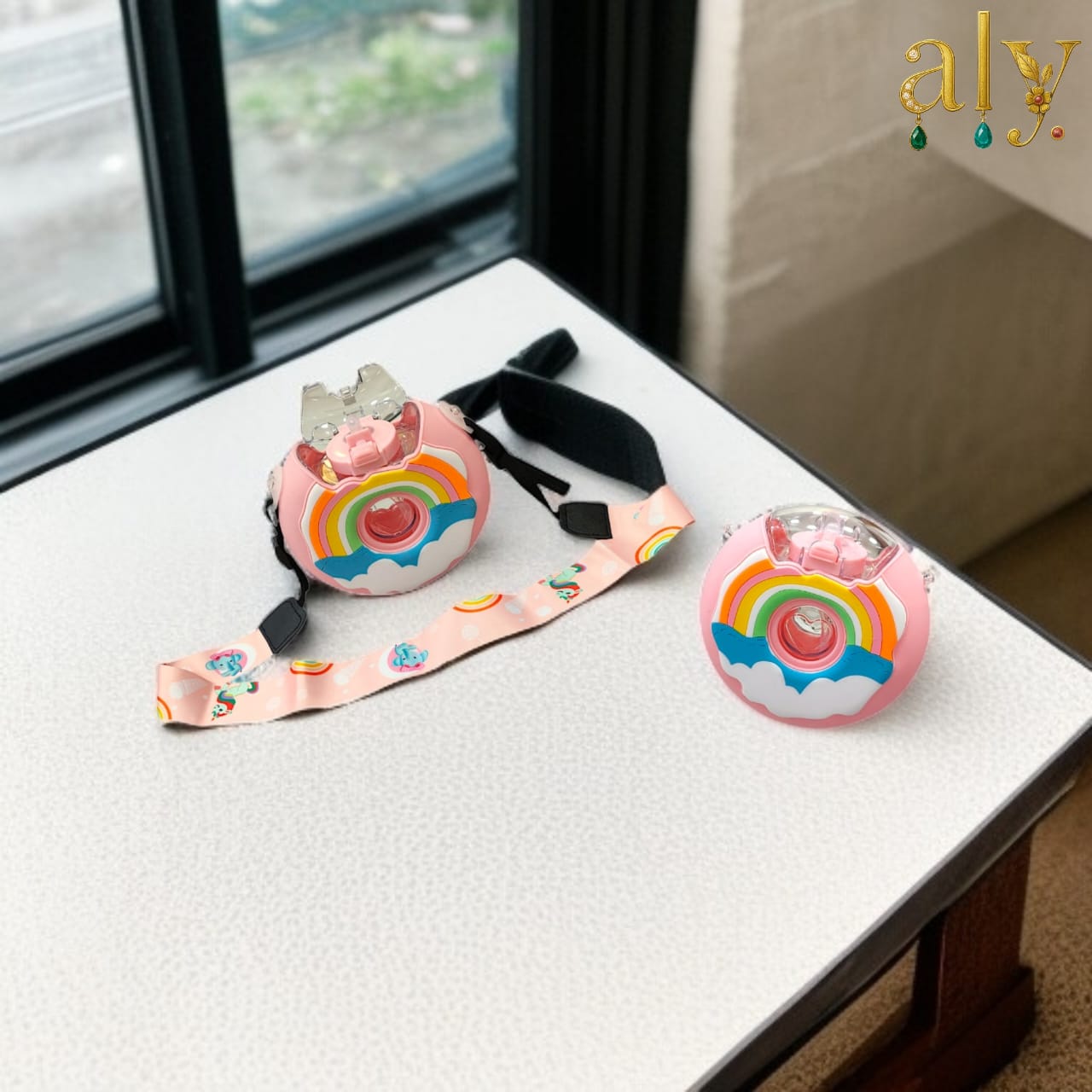 Turn heads with this vibrant, camera-shaped bottle bursting in rainbow hues. With its built-in straw and matching strap, PrismCam is your playful, portable hydration buddy—perfect for every colorful adventure!