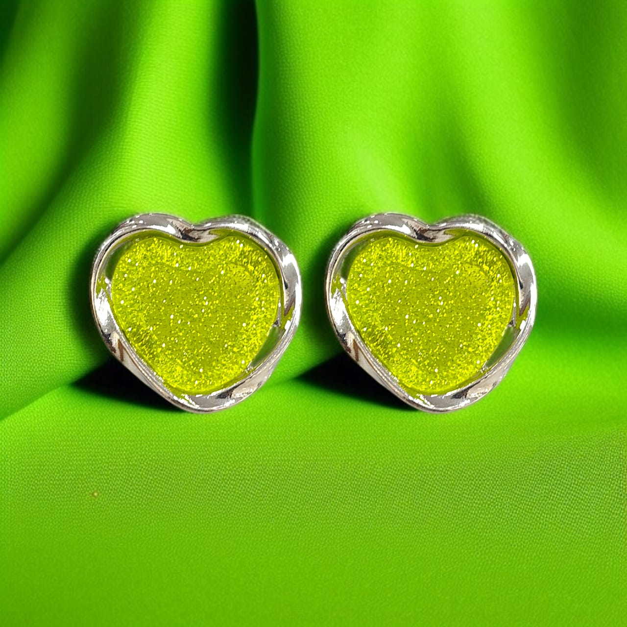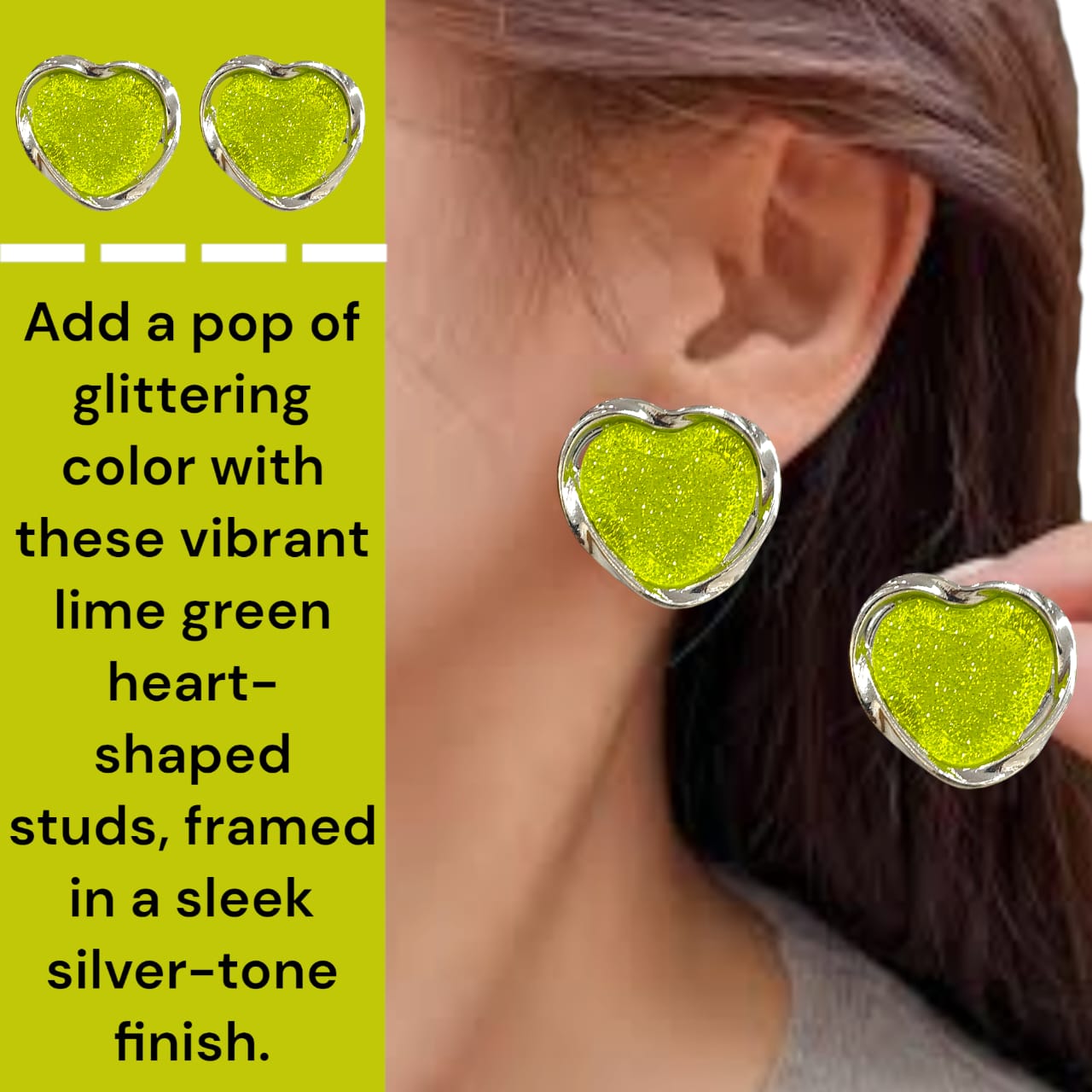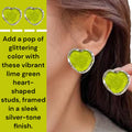 Chic lemon green heart-shaped earrings that add a fresh pop of love and shine to your everyday look.